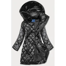 Čierna dámska bunda s kožušinovým golierom (J9-068)