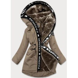 Béžová dámska bunda s kožušinovou podšívkou (B8115-12)