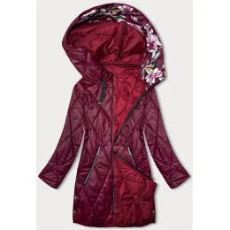 Dámska bordová bunda s ozdobnou kapucňou (B8227-74)