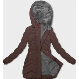 Dámska zimná bunda z umelej kožušiny hnedá (LHD-23023)