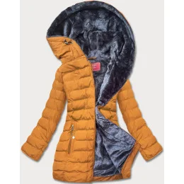 Tmavo žltá dámska zimná bunda s kožušinovou podšívkou (m-13)