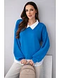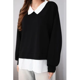 Táto štýlová dámska mikina s nápadnou košeľovou vsadkou je dokonalou kombináciou elegancie a pohodlia. Model kombinuje klasický strih mikiny s našitou spodnou časťou a golierom pripomínajúcim košeľu, čím vytvára módny efekt vrstvenia bez potreby nosiť dva samostatné kusy oblečenia.