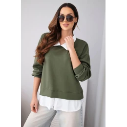 Dámská máslová mikina z viskózy s model 22014161 vsadkou khaki - K-Fashion