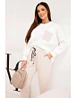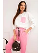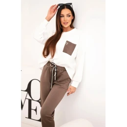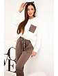 Táto štýlová a pohodlná dámska tepláková súprava je ideálnou ponukou pre ženy, ktoré oceňujú pohodlie a módny vzhľad. Mikina z mäkkého, voľného materiálu bola obohatená o kontrastné vrecko s roztomilým akcentom v tvare srdca, ktoré celku dodáva ženský šarm. Nohavice s elastickým pásom a šnúrkami na stiahnutie zaručujú dokonalé prispôsobenie sa postave a úplnú voľnosť pohybu.