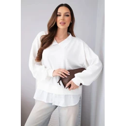 Dámska maslová viskózna mikina s košeľovou vložkou biela