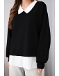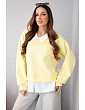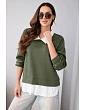 Táto štýlová dámska mikina s nápadnou košeľovou vsadkou je dokonalou kombináciou elegancie a pohodlia. Model kombinuje klasický strih mikiny s našitou spodnou časťou a golierom pripomínajúcim košeľu, čím vytvára módny efekt vrstvenia bez potreby nosiť dva samostatné kusy oblečenia.