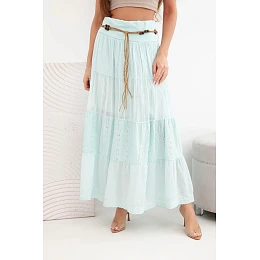 Dámska maxi bavlnená sukňa s čipkovou výšivkou a elastickým pásom mätová