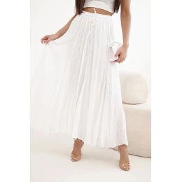 Vzdušná dámská maxi sukně je ideální volbou pro teplé dny. Model vyrobený ze 100% bavlny je lehký, prodyšný a velmi pohodlný na nošení. Jemně nařasený materiál dodává sukni módní, přirozený charakter a při pohybu se krásně vlní.