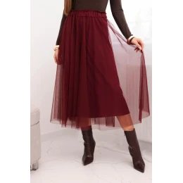 Dámska midi sukňa z tylu s viskózovou podšívkou bordová