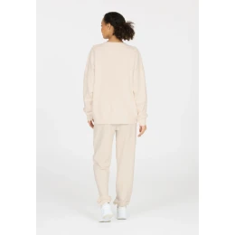 Mikina má minimalistický dizajn bez kapucne, s okrúhlym výstrihom a rebrovanými lemami na rukávoch a leme.