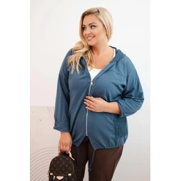 Dámská mikina Plus Size bavlněná oversize s dlouhým rukávem džínová modrá