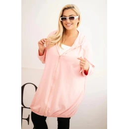 Dámska bavlnená mikina s kapucňou a zipsom Plus Size Powder Pink