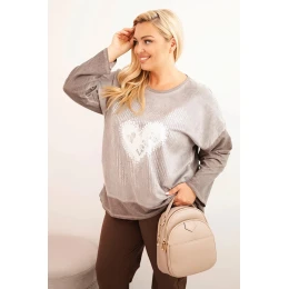Dámská mikina Plus Size bavlněná s potiskem srdce a model 21321860 hnědá - K-Fashion