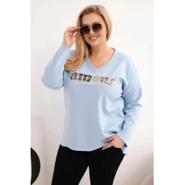 Plus veľkosť dámske V-neck mikina modrá
