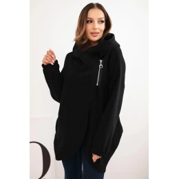 Dámská mikina s kapucí a asymetrickým zipem teplá černá