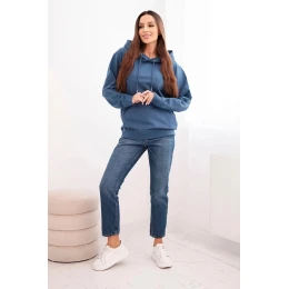 Dámská mikina s kapucí a klokaní kapsou z bavlny džínová modrá