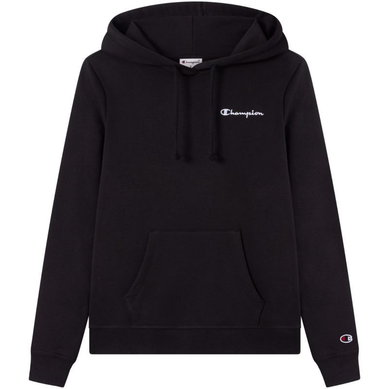 Dámská mikina Champion černá 118404 KK001 Tato dámská mikina Champion je ideální pro každodenní nošení, má úzký střih, žebrované manžety a spodní lem, klokaní kapsu, nastavitelnou kapuci se stahovací šňůrkou, decentní logo na hrudi, malé logo na rukávu, materiál: 69 % bavlna, 31 % polyester.