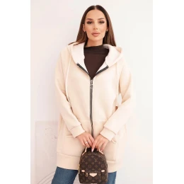 Dámska mikina s kapucňou a zipsom, béžová