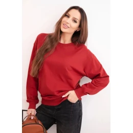 Dámska bavlnená základná mikina s kapucňou a elastickým lemom s okrúhlym výstrihom bordová