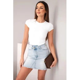 Dámská mini džínová sukně s lemem džínová model 21951897 - K-Fashion