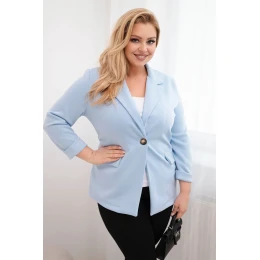 Elegantné a pohodlné dámske sako z plus size viskózy, ktoré dokonale spája štýlový vzhľad s pohodlím pri nosení. Je vyrobené zo zmesi viskózy, polyesteru a elastanu príjemnej na dotyk, dokonale sa prispôsobí postave, neobmedzuje v pohybe a je vhodné na každodenné nosenie, ako aj do práce alebo na stretnutia. Model s jedným gombíkom, klasickým golierom a ozdobnými chlopňami na vreckách - dodá šarm každej štylizácii.