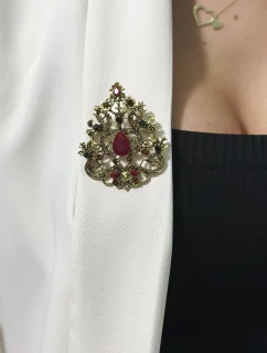 Brošňa XZ459-107 zlatá + červená