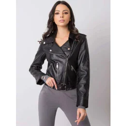 Čierna motorkárska bunda.