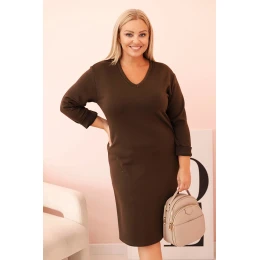 • Dámska nadrozmerná sukňa s véčkovým výstrihom a rukávmi hnedá