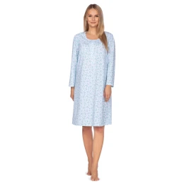 Nočná košeľa 007 modrá REGINA - svetlomodrá - vyrobená z kvalitnej bavlny - vzorovaná - dlhé rukávy - výstrih na gombíky Zloženie materiálu: 100% bavlna