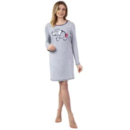 Dámska nočná košeľa 142 sivá REGINA - sivá - vyrobená z kvalitnej bavlny - potlač na prednej strane - dlhé rukávy - prešívané lemy