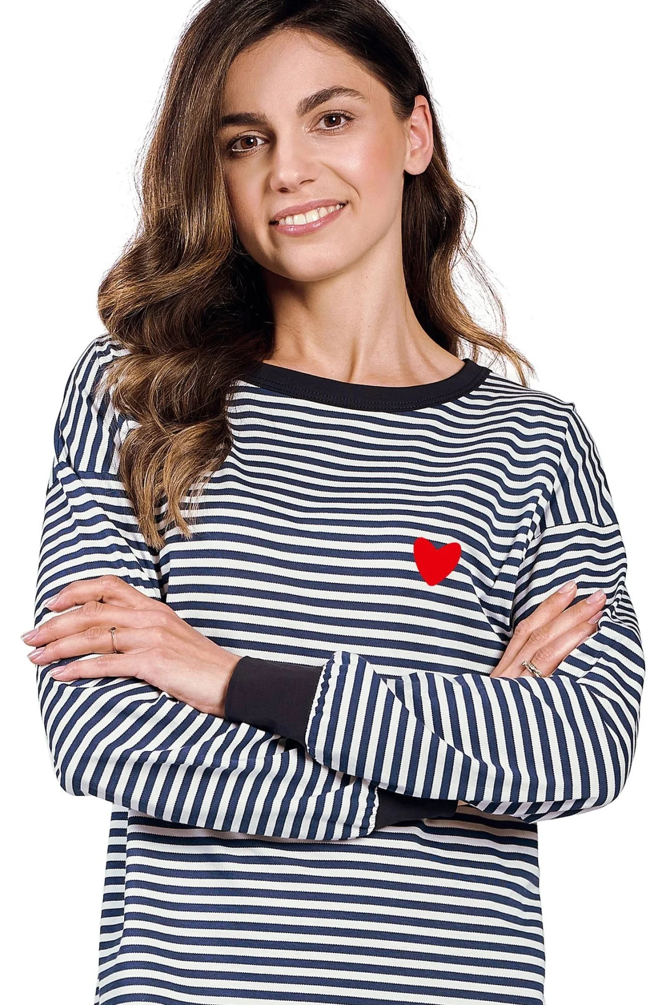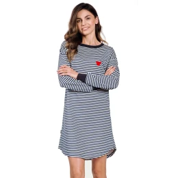 Dámska nočná košeľa 3220 Trudy TARO - svetlomodrá - vyrobená z kvalitnej bavlny - potlač na prednej strane - s prúžkami - dlhé rukávy s manžetami - spodné časti zakončené jemným riasenímZloženie materiálu: 100% bavlna