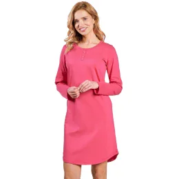 Dámska nočná košeľa 3223 Daphne TARO - malinová farba - vyrobená z kvalitnej bavlny - okrúhly výstrih so zapínaním na gombíky - dlhé rukávy - spodná časť zakončená jemným riasením