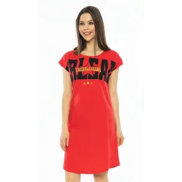 Dámska nočná košeľa s krátkymi rukávmi Cheerleading. Nočná košeľa s okrúhlym výstrihom má na hrudi veľký nápis RELAX so zlatým písmom a tromi hviezdičkami. Použitý materiál je príjemný a pružný na dotyk. Obsah bavlny je 100 % v prípade červenej farby a 70 % v prípade tmavosivej farby.