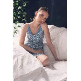 Dámska nočná košeľa na ramienka s potlačou bielych motýľov.