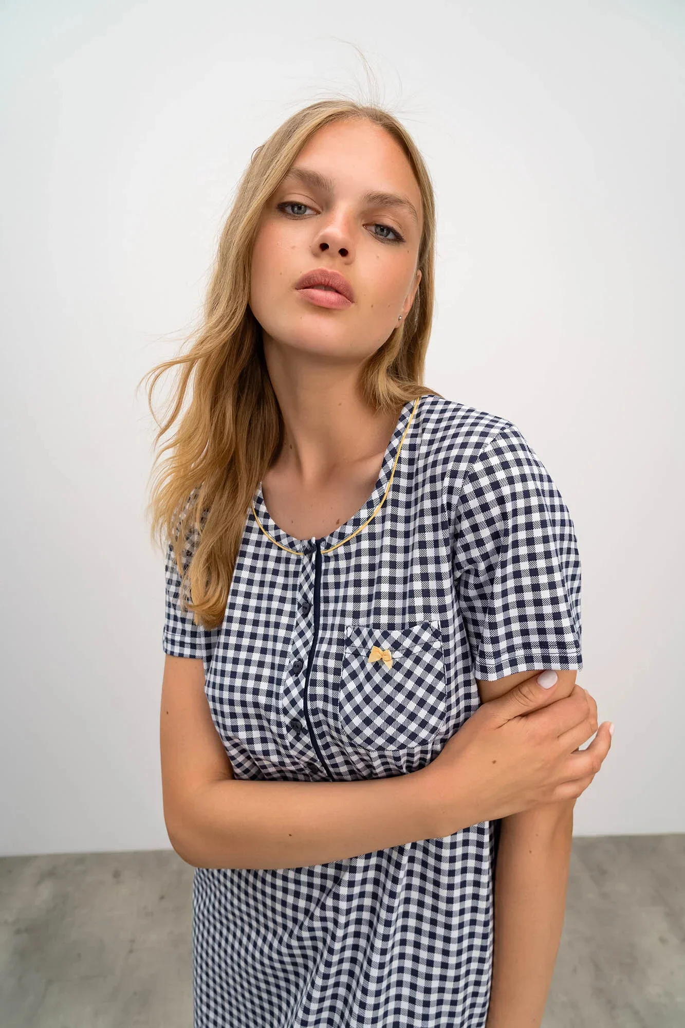 Dámska nočná košeľa 16215-183 - Vamp - krátke rukávy, náprsné vrecko, okrúhly výstrih s piatimi gombíkmi.