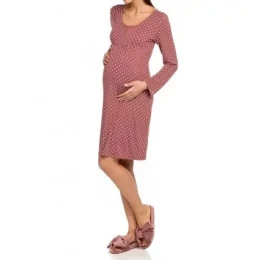 - Puntikovaná dámská noční košile s dlouhými rukávy