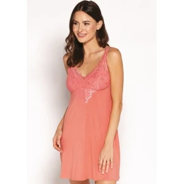 Dámská noční košile od značky Babella. Jemná noční košilka na ramínka v délce ke kolínkům. Košilka má krajkové vytužené košíčky.