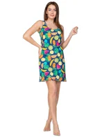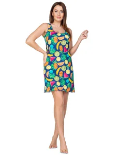 Vzorovaná dámská noční košile na širokých ramínkách. Ušitá z barevné a příjemné bavlny. Má polokulatý výstřih a délku do poloviny stehen.