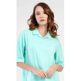 Dámska bavlnená nočná košeľa Martina s krátkym rukávom. Nočná košeľa je košeľového typu s mierne predĺženým zadným dielom. Výstrih má klasický golier. Na hrudi je vytlačená malá korunka. Použitý bavlnený materiál je príjemný a pružný na dotyk.