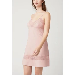 Dámska luxusná nočná košeľa bez ramienok s čipkou na výstrihu a leme.