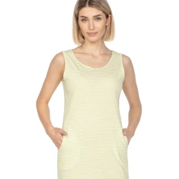 Dámská noční košilka 128 green REGINA - zelená barva - z vysoce jakostní bavlny - pruhovaná - široká ramínka - pohodlné kapsy na bocích
