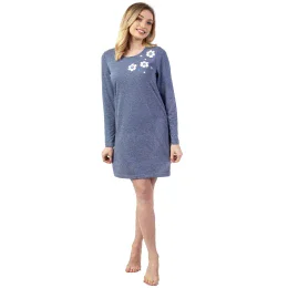 Dámska nočná košeľa 141 blue REGINA - tmavomodrá - vyrobená z kvalitnej bavlny - zdobená potlačou na prednej strane - dlhé rukávy