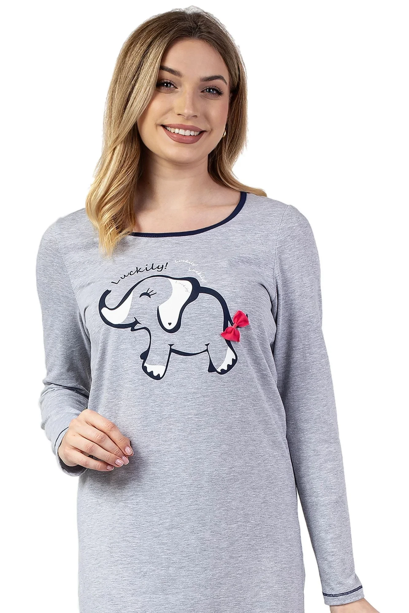 Dámska nočná košeľa 142 sivá REGINA - sivá - vyrobená z kvalitnej bavlny - potlač na prednej strane - dlhé rukávy - prešívané lemyZloženie materiálu: 100% bavlna