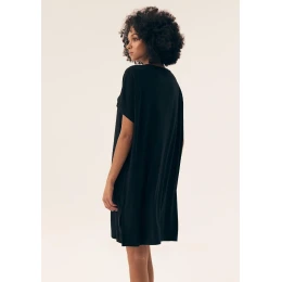 Pohodlná a stylová – to je černá košilka Henderson, kterou si zamilujete pro její volný střih a měkký, splývavý materiál. V jednoduchosti je krása – tato košilka je ideální pro relax doma nebo pohodlné spaní. Díky V výstřihu a krátkým rukávům dodává ležérní, elegantní vzhled. Dopřejte si kousek, který nesmí chybět ve vašem šatníku!