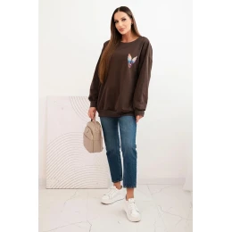 Dámská oversize mikina z bavlny s barevnými model 21421754 na zádech hnědá - K-Fashion
