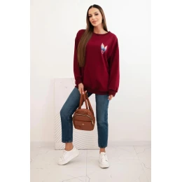 Dámská oversized mikina z bavlny s barevnými model 21421746 na zádech bordová - K-Fashion