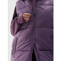 Dámska dlhá páperová vesta má integrovanú kapucňu s možnosťou nastavenia objemu. Krk je krytý vysokým golierom, ktorý ďalej chráni pred chladom a vetrom.