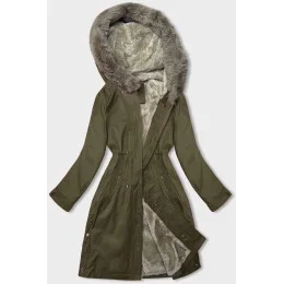 Dámska bunda parka v army farbe s kožušinovou podšívkou (5M3180-136)