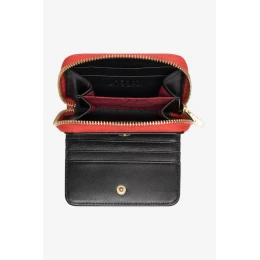 Malá dámska peňaženka je vyrobená z hladkej prírodnej kože. Vo vnútri sa nachádza dvanásť vreciek na karty. Vrecko na zips má priehradku na bankovky a mince. Model je zabalený v elegantnej červenej škatuľke. Ideálna ako darček!