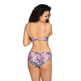 Podprsenku zdobí dravý vzor zjemněný růžovou barvou. Model pěkně tvaruje poprsí a udržuje jej na správném a žádoucím místě pomocí vyztužených košíčků a pružného obvodu. Pro vytvoření pěkného kompletu je možné dokoupit klasické kalhotky, nebo kalhotky brazilky.